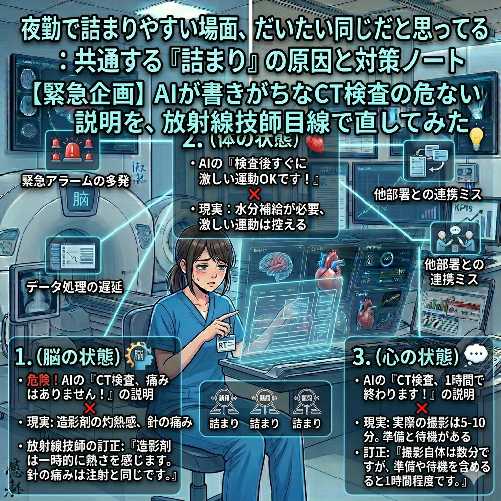 今回は、CT検査の説明文を例に、AIが書きがちな表現を放射線技師17年目の現場目線で直してみます。